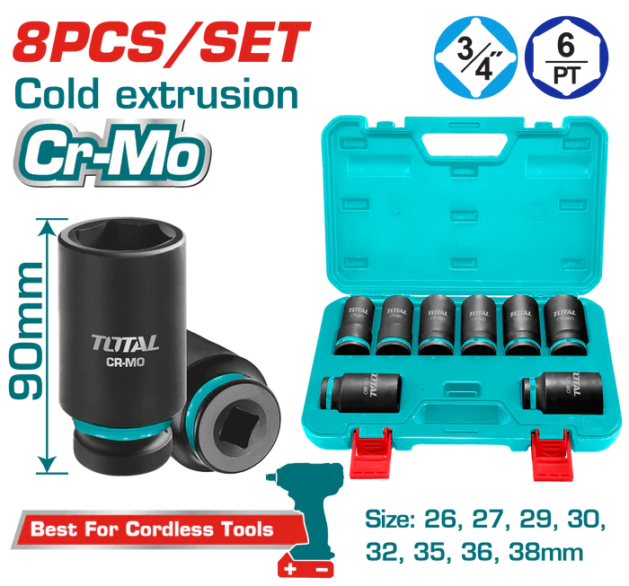 طقم عدد 8 لقم تصادمى طويلة مقاس 3/4″
